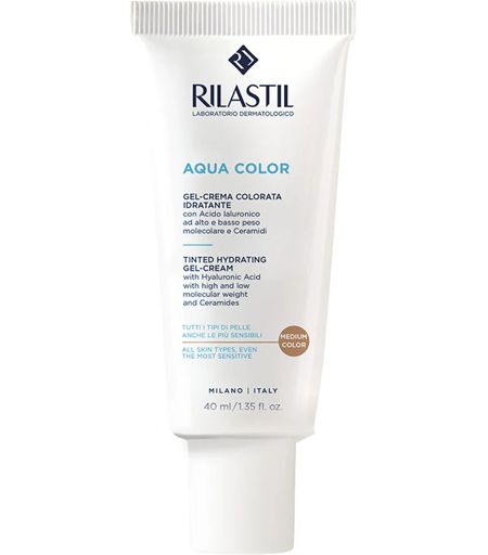 Gel Crema Colorata Idratante Medium, Uniformante e Leggera per Tutti i Tipi di Pelle, colore Medium - DESCRIZIONE PRODOTTO: - Rilastil Aqua Color Gel Crema Colorata Idratante Medium è un trattamento cosmetico dalla texture leggera e a rapido assorbimento, studiato per aumentare l’idratazione e uni… ...