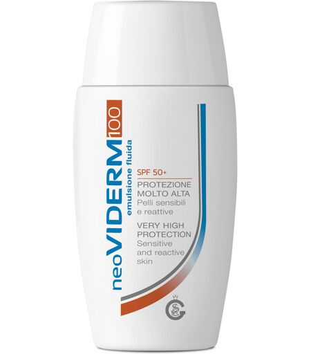 neoVIDERM 100 - emulsione fluida SPF 50+ - Descrizione Emulsione fluida protettiva indicata per proteggere e prevenire alterazioni di pelli sensibili e reattive per precedenti danni da scottature solari, ustioni e trattamenti radioterapici. Resistente all'acqua. Senza derivati del grano. Ipoallerge… ...