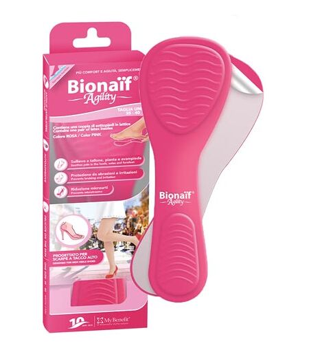 Bionaif Agility - Descrizione Sottopiede in lattice studiato per piedi sempre in movimento durante attività lavorative e di tempo libero. Traspirante e ultraleggero con i suoi soli 2 mm di spessore è adatto a tutte le scarpe alte e zeppe anche con plateau e tacchi a spillo. La composizione in sof… ...