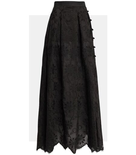 Maxi gonna ricamata nera con elastico in vita,particolare laterale i bottoncini come dettaglio sul fianco. ...