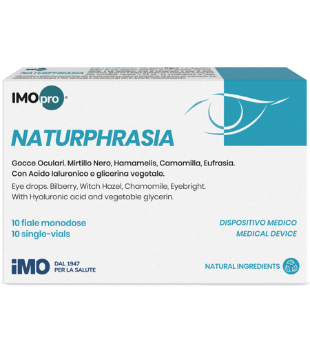 Dispositivo Medico Oftalmico Idratante e Protettivo - DESCRIZIONE PRODOTTO: - IMOpro Naturphrasia è un dispositivo medico oftalmico costituito da una soluzione isotonica sterile, priva di conservanti e a pH fisiologico. Contiene una combinazione di acido ialuronico e glicerina, che conferiscono un’… ...