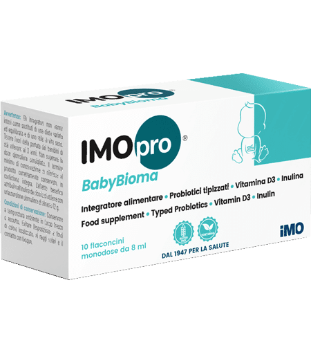 Imopro Babybioma Integratore alimentare a base di probiotici (Bifidobacterium infantis, Lactobacillus rhamnosus, Saccharomyces boulardii), Inulina e vitamina D3, che favoriscono l’equilibrio del microbiota, la difesa immunitaria e le normali funzioni intestinali. È un prodotto ideale per bambini, neonati e adolescenti. È ben tollerato in quanto senza glutine e coloranti e può essere assunto anche nell’ambito di una dieta vegetariana. Avvertenze Gli integratori non vanno intesi come sostituti di una dieta varia ed equilibrata e di uno stile di vita sano. Non superare la dose giornaliera consigliata. Tenere fuori dalla portata dei bambini. In caso di gravidanza consultare il medico. Formato La confezione contiene 10 flaconcini monodose da 8ml. ...