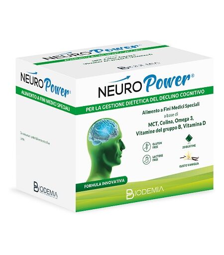 NEURO Power - Descrizione Alimento a Fini Medici Speciali, sviluppato per rispondere alle esigenze specifiche delle persone che presentano declino cognitivo correlato all'età. Contiene una combinazione di nutrienti (acidi grassi omega - 3 - DHA ed EPA - colina, vitamina E e vitamina C, vitamina B1,… ...