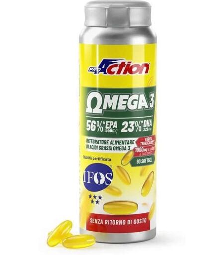 ProAction Omega 3 Integratore per Sportivi è un integratore a base di EPA e DHA da olio di pesce, ideale per sportivi. Riduce dolori muscolari, sostiene cuore e articolazioni, senza glutine né lattosio, senza retrogusto. Formato: 90 softgel ...
