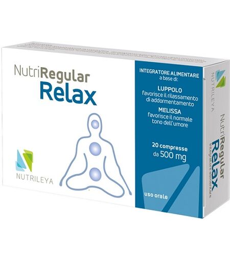 Nutriregular relax - Descrizione Integratore alimentare a base di Luppolo che favorisce il rilassamento e il sonno (anche in caso di stress) e melissa che oltre a favorire il rilassamento aiuta il normale tono dell'umore. Ingredienti Agente di carica: cellulosa microcristallina fosfato dicalcico… ...