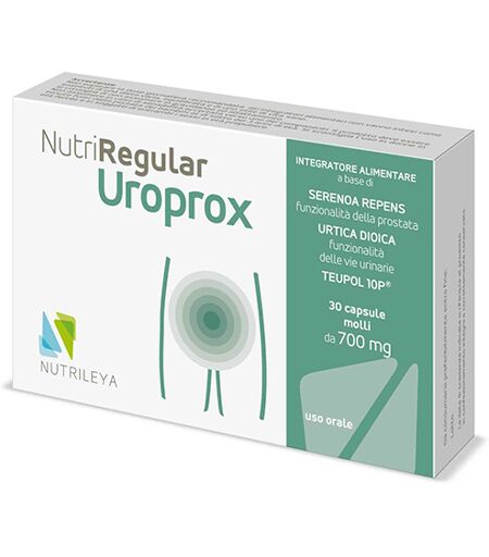 NutriRegular Uroprox - Descrizione Integratore alimentare a base di serenoa repens e urtica dioica per la funzionalità delle vie urinarie e della prostata con Teupol10P. Ingredienti Serenoa [serenoa repens (W.bartram) small] frutto e.o. tit. 85% - 95% acidi grassi; gelatina; ortica (urtica dioica … ...