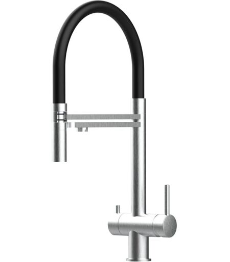 VIZIO Rubinetto 3 vie miscelatore lavello cucina in Acciaio INOX Spazzolato - Canna nera movibile e doccia due getti staccabile - ACCIAIO CHIRURGICO