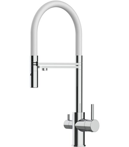 VIZIO Rubinetto 3 vie miscelatore cucina cromato con canale separato per acqua filtrata, canna bianca movibile e doccia due getti staccabile