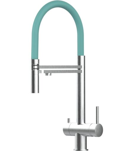 VIZIO Rubinetto 3 vie miscelatore lavello cucina in Acciaio INOX Spazzolato - Canna turchese movibile e doccia due getti staccabile - ACCIAIO