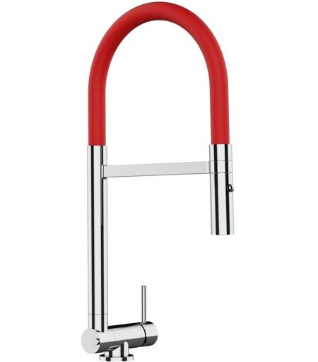 VIZIO Rubinetto abbattibile a soli 4,5 cm, miscelatore cucina cromato per sottofinestra canna rossa movibile e doccia due getti staccabile