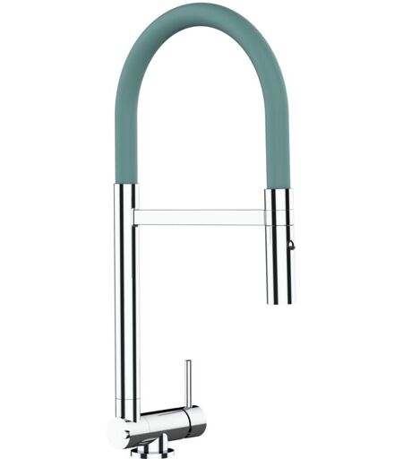 INFO PRODOTTO art nr.: VZSU411009 Colore: Cromato / Turchese Tiffany Rubinetto Miscelatore Lavello Cucina sottofinestra con canna girevole a 360° e doccetta a 2 getti movibile. Canna abbattibile per raggiungere un'altezza totale di 4,5 cm. Ideale per chi ha il lavello sotto ad una finestra DESCRIZIONE DEL PRODOTTO Canna girevole a 360° Cartuccia ceramica diametro 25 mm. Cold Start - Partenza da freddo : la maniglia apre su freddo e si muove solo in avanti - ideale per chi ha il lavello vicino al muro. Leva di comando: Lato destro Tubo in silicone colorato movibile in tutte le direzioni con un raggio d'azione di circa 60cm. Doccia a 2 getti di alta qualità: getto singolo o effetto doccia Ottone a norme igienico sanitarie DIN EN 50930/6 UBA list 2017. Canna con doppio anello di protezione e doppia guarnizione. Foro necessario per l'installazione: 35mm. Flessibili di collegamento con raccordo 3/8 - guarnizione già inserita nel raccordo. Flessibili certificati a norme DVGW KTW A1. ...