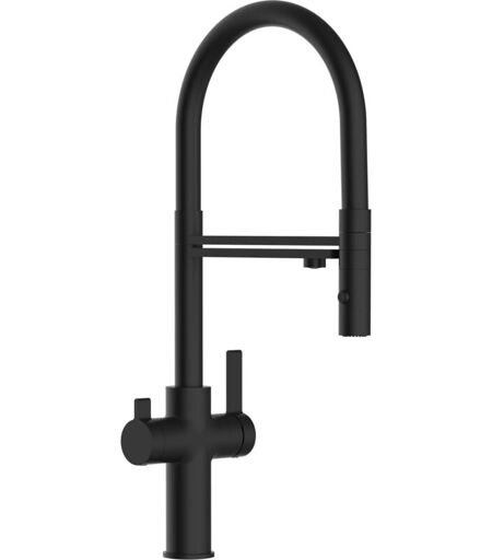 VIZIO Rubinetto 3 vie miscelatore cucina Nero Opaco con canale separato per acqua filtrata, canna nera movibile e doccia due getti staccabile - Serie fc