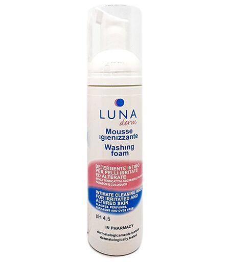 LUNA - Mousse Igienizzante - Descrizione Detergente intimo a base di tea tree oil, che aiuta a proteggere le mucose da molteplici microrganismi. Tratta le molteplici affezioni della pelle e delle mucose, rispettando il pH delle parti intime. La consistenza della mousse deterge senza alterare il fil… ...