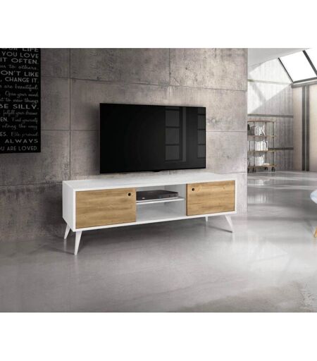 Se sei in cerca di un mobile porta TV dall'aspetto moderno e accattivante, allora lasciati affascinare dal design unico del Brody. Con il suo abbinamento incredibile di colori - un mix di legno di abete spazzolato naturale e bianco - questo mobile si distingue dalla massa. Non solo è bellissimo da vedere, ma è anche estremamente funzionale. Le gambe svasate conferiscono un tocco di eleganza, mentre le due ante spaziose e i ripiani aperti offrono ampio spazio per sistemare console, lettori cd e impianti audio. Dotato di stile italiano e praticità ineguagliabile, il Brody è la scelta perfetta per il tuo salotto. ...