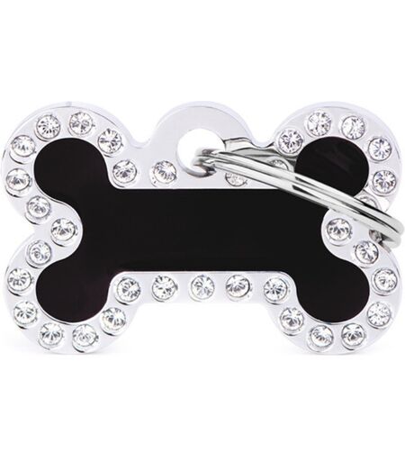 MyFamily Medaglietta per Cani Personalizzabile Glam Osso Nero Piccolo Strass