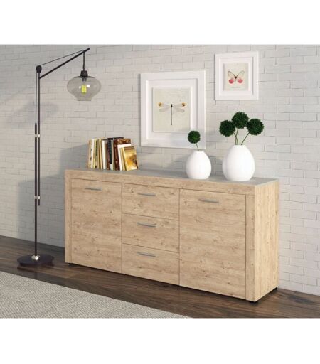 BRICOZONE Credenza Madia Con 3 Cassetti e 2 Ante Laterali Mobile Contenitore Per Sala Da Pranzo Design Moderno Effetto Legno Naturale Stile Elegante Soggiorno