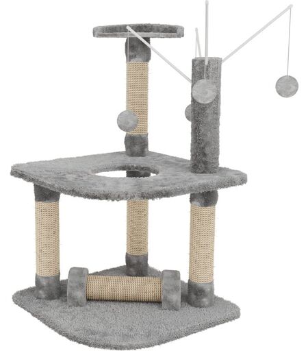 BRICOZONE - Albero per Gatto con Graffiatoio Cuccia Giocattolo Gatti Parco Giochi Tiragraffi in Sisal Naturale 90 x 45 x 45 cm (Colore Grigio Ginger