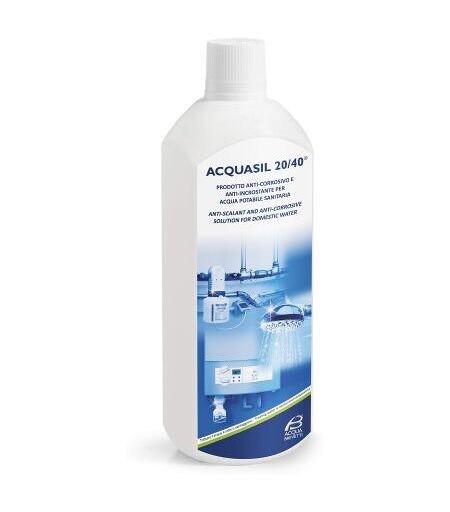 PRODOTTO ANTI CORROSIVO ED ANTI INCROSTANTE PER ACQUA POTABILE SANITARIA. Campo d'impiego: Acquasil 20/40 e' una soluzione acquosa di polifosfati a purezza alimentare utilizzato per le prevenzione di incrostazioni e corrosione negli impianti di acqua sanitaria. Le proprieta' stabilizzanti di Acquasil 20/40 sono garantite per temperature istantanee fino a 80o e temperature di accumulo fino a 60o e durezza compresa fra i 5o e i 35o. Acquasil 20/40 e' generalmente impiegato per: -prevenzione dei depositi calcarei sulle superfici di scambio termico nei circuiti per la produzione di acqua calda e fredda. -il controllo della corrosione in scambiatori di calore, tubazioni ed apparecchiature, in particolare quelle alimentate con acque addolcite. COMPOSIZIONE: Contiene 15-30% di polifosfato di sodioE452 idoneo al trattamento di acque destinate al consumo umano (conforme UNI EN 1212:2005) MODALITA' D'USO: Prodotto destinato ad uso professionale Utilizzare tal quale ESCLUSIVAMENTE nelle pompe ...