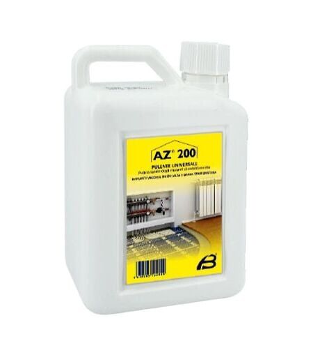 AZ 200 è un condizionante chimico neutro ad azione detergente pronto all'uso specifico per le operazioni di lavaggio e risanamento dei circuiti chiusi di riscaldamento ad alta e bassa temperatura. AZ 200 è idoneo anche alla pulizia dei circuiti di distribuzione acqua calda e fredda sanitaria e dei sistemi di produzione del vapore grazie ai componenti non volatili. La particolare formulazione di AZ 200 basata esclusivamente su composti organici ne consente un sicuro utilizzo in qualsiasi impianto sia sulle parti in acciaio sia sulle parti costituite da metallurgie miste (rame e alluminio inclusi). AZ 200 non altera i materiali plastici o elastomerici normalmente presenti negli impianti. AZ 200 è un prodotto pronto all'uso. Non contiene nitriti, cromati e metalli pesanti non è acido ne caustico, non è tossico e non è nocivo né per la persona né per l'ambiente. Risanante disincrostante per impianti di riscaldamento vecchi e nuovi ad alta e bassa temperatura Risanante disincrostante e ...