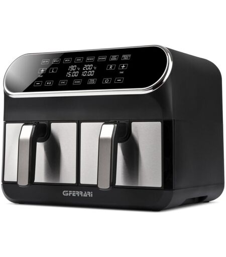 G3 Ferrari G10150. Tipo di prodotto: Friggitrice ad aria calda, Capacità : 8 L, Capacità friggitrice: 1,8 kg. Tipo di costruzione: Doppia, Colore del prodotto: Nero, Acciaio inossidabile, Tipo di controllo: Touch. Tipo di display: LED. Potenza: 1700 W, Tensione di ingresso AC: 220 - 240 V, Frequenza di ingresso AC: 50 - 60 Hz. Larghezza: 370 mm, Profondità : 385 mm, Altezza: 310 mm ...