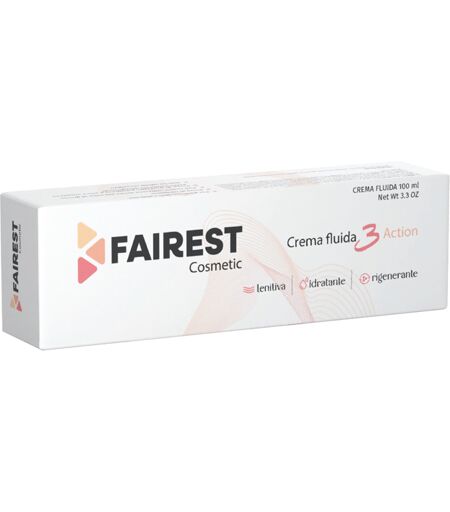 FAIREST Cosmetic - Crema fluida 3 Action - Descrizione Crema fluida lenitiva, idratante e rigenerante. Nutre ed idrata la pelle e rigenera la barriera cutanea. Indicata anche per le pelli più delicate e sensibili. Si assorbe velocemente. Non contiene SLS/SLES, solfati, parabeni, PEG e siliconi. Der… ...