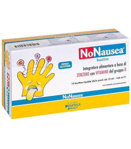 NoNausea - bustine - Descrizione Integratore alimentare a base di zenzero con vitamine del gruppo B con fruttosio ed edulcorante. Lo zenzero svolge un'azione antinausea, favorendo la funzione digestiva, la regolare motilità gastrointestinale ed eliminazione dei gas. Le vitamine B2 e B6 contribuisco… ...