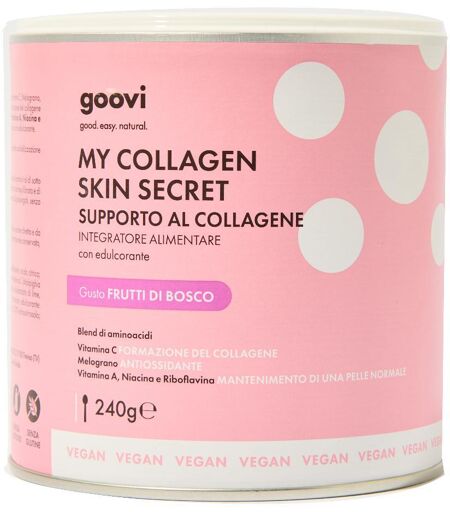 goovi - MY COLLAGEN SKIN SECRET - Descrizione Integratore alimentare a base di aminoacidi caratterizzanti il collagene, vitamina C,melograno, olivo, vitamina A, niacina e riboflavina. Vitamina C: contribuisce alla normale formazione del collagene per la normale funzionedella pelle. Melograno: svolg… ...