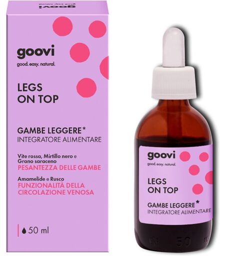 Goovi Legs On Top - Descrizione Integratore alimentare a base di mirtillo nero, vite rossa, mirtillo rosso, amamelide e rusco. Vite rossa, mirtillo nero e grano saraceno favoriscono la funzionalità del microcircolo (pesantezza delle gambe). Amamelide e rusco risultano utili per favorire la funziona… ...
