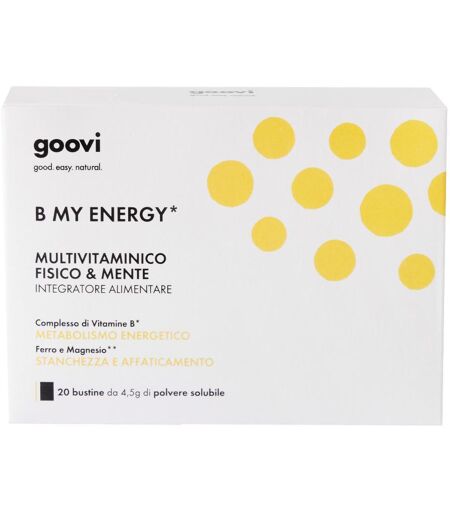 goovi - MULTIVITAMINICO - Descrizione Integratore alimentare a base di complesso di vitamine B da quinoa, ferro microincapsulato, magnesio e polvere di dattero. Ideale per affrontare con la giusta energia periodi di stanchezza fisica e mentale causati da stress e affaticamento. Gusto agrumi in prat… ...