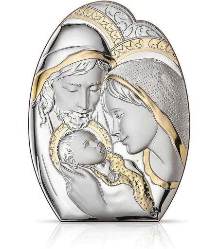 Sacra Famiglia Della Selezione Gioiapura Del Brand Puro Della Collezione Sacra Famiglia. Icona Sacra In Argento 999 Tecnologia Pvd Con Retro In Legno. Sacra Famiglia Di Colore Argento/ Oro. Dimensioni: 12,5x17,5cm. La Referenza È Pu8412/3, Colore: ...