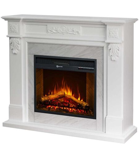DIVINA FIRE Camino elettrico caminetto da terra truman Bianco effetto marmo L121 x P38 x H108