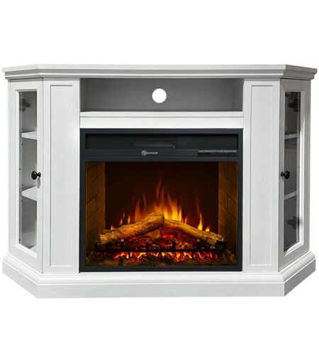 DIVINA FIRE Camino elettrico caminetto da terra ad angolo madison in legno Bianco L126 x P78 x H83