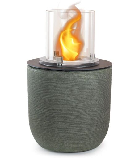 DIVINA FIRE Camino bioetanolo da terra per interno esterno raffaello' in resina verde salvia ø35x55 cm