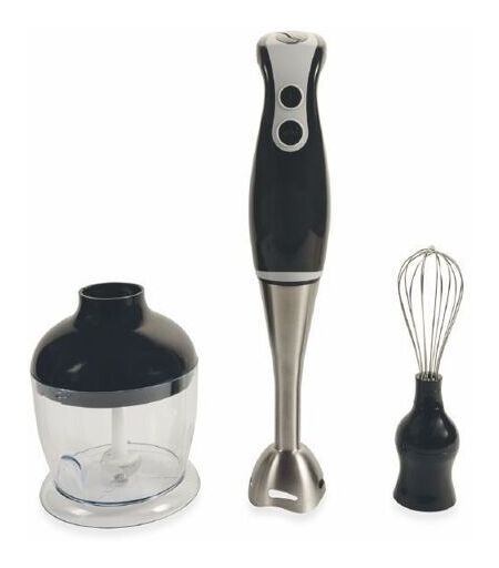 MY CHEF MINI ROBOT 3 IN 1 300W IN ACCIAIO E ABS NERO Sarà come avere un aiuto cuoco nella tua cucina. Esprimere la creatività e non rinunciare al gusto è facilissimo. Dotato di una frusta. un tritatutto e un frullatore a immersione. può lavorare con 2 diverse velocità a seconda dell'utilizzo. Piccolo segreto Per dare gusto ai tuoi soffritti senza perdere tempo tagliando le verdure. basterà inserire nel tritatutto carote. sedano. cipolla e un pizzico di noce moscata. 2 velocità: regolare e turbo Corpo motore intercambiabile Mini tritatutto Frullatore a immersione Frusta Lame in acciaio Recipiente tritatutto: 750 ml Bicchiere frullatore: 650 ml Accessori smontabili per una facile pulizia Wattaggio: 300 W Voltaggio: 240 V Frequenza: 50 Hz Spina italiana a 2 poli Lunghezza cavo: 1.3 mt Frullatore: h. 37.5 cm Sbattitore: Ø 5.5 x h. 40 cm Tritatutto: Ø 13.5 x h. 36 cm ...