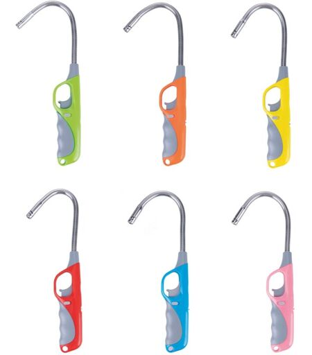 Accendigas ricaricabile In ABS e acciaio inossidabile Piezoelettrico a gas Ricaricabile con gas propano Con canna flessibile Con tasto di blocco Valvola di regolazione gas Misure: l. 38 cm Disponibile in 6 colori: giallo, rosa, ro ...