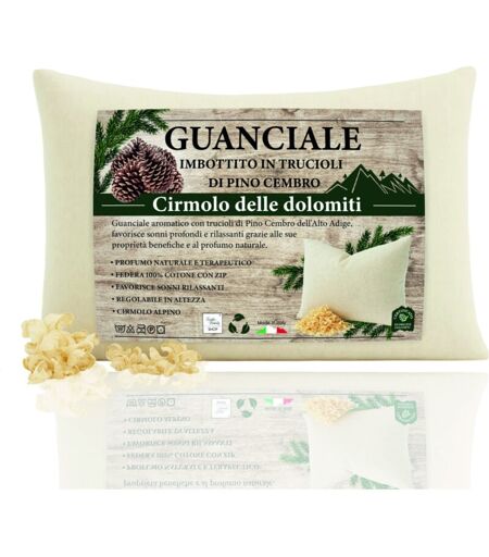 TEX FAMILY Guanciale Pino Cembro Alto Adige 50x80 - Cuscino Cirmolo Naturale Sonno Profondo - Regolabile, Cotone Grezzo, Relax