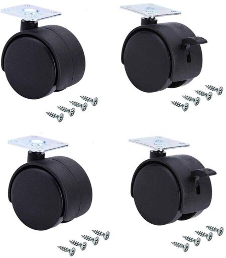 kit composto di 4 rotelle pivotanti da mm.50 (2 con freno + 2 senza freno) con piastra e le viti necessarie per l'assemblaggio. Di facile montaggio, queste ruote ottimizzano e migliorano i vostri mobili grazie ai loro cuscinetti a sfere, i quali forniscono una scorrevolezza dolce e silenziosa. ...