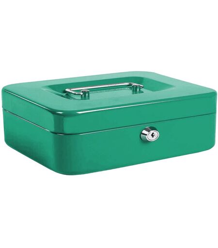Cassetta portavalori con mensoletta porta spiccioli in plastica. Struttura in lamiera verniciata a fuoco di colore verde. Serratura a cilindro con due chiavi. ...