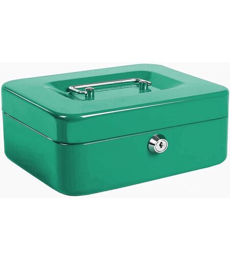 Cassetta portavalori con mensoletta porta spiccioli in plastica, struttura in lamiera verniciata a fuoco di colore verde, serratura a cilindro con due chiavi. ...