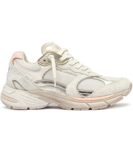 - Sneaker realizzata con materiali di prima qualità Made in Italy.- Tomaia in camoscio e tessuto color avorio, dettagli in pelle laminata platino.- Linguetta in pelle color avorio.- Lacci in cotone bianco sporco.- Fodera in pelle e tessuto.- Suola in gomma beige, fondo rosa, 2.5.- Altezza 4 cm.- Finitura vintage.- Vestibilità regolare.Composizione:56% pelle 44% tessile. ...