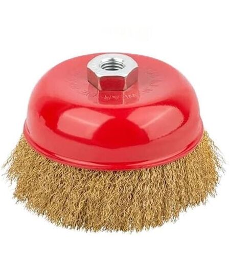 Spazzola a tazza con filo in acciaio ottonato, per smerigliatrice angolare (diametro120 mm). ...