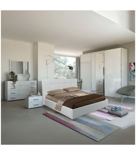 Camera da letto Amara bianco laccato con armadio 3 ante scorrevoli La camera è composta da: Armadio 3 ante scorrevoli con specchio. Letto matrimoniale contenitore Ascoli rivestimento ecopelle bianco (rete inclusa). Comò 4 cassetti. Comodini 2 cassetti. Specchiera rettangolare. Dimensioni: Armadio L 258 x P 56 x H 236 cm. Letto Ascoli 182x195x105 H cm. Comò 4 cassetti L 116 x P 45 x H 77 cm. Comodino 2 cassetti L 54 x P 35 x H 40 cm. Specchiera L 56 x P 2 x H 76 cm. Colore bianco laccato. ...