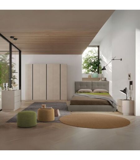 Camera da letto Musto con letto contenitore colore cashmere e antracite Caratteristiche: Colore cashmere con particolari antracite Camera da letto composta da: Armadio 6 ante battenti Letto matrimoniale contenitore Melia tortora con testiera trapuntata in ecopelle Comò 3 cassetti Comodini 2 cassetti Gruppi con guide ammortizzate Dimensioni: Armadio L273 x P55 x H240 cm. Letto L 182 x P 220 x 109 H cm. Comò L110 x P52 x H83 cm. Comodino L50 x P42 x H52 cm. Made in Italy ...