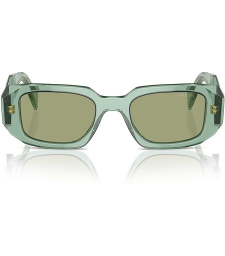 Questi Occhiali da Sole Prada Donna PR17WS 11R10E sono realizzati in acetato dalla forma rettangolare con montatura verde salvia trasparente. Questo modello, anche se dalla forma classica, riesce ad essere al passo con la moda. Le aste, dalla forma particolare, danno un tono raffinato ed elegante e si sposano perfettamente con la forma classica. Le lenti verdi con lieve specchiatura completano il capolavoro. Questo Prada riesce a catturare anche gli sguardi più esigenti. ...