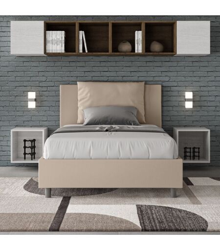 LES TENDANCES - Letto una piazza e mezza senza rete imbottito 120x190 similpelle tortora Antea