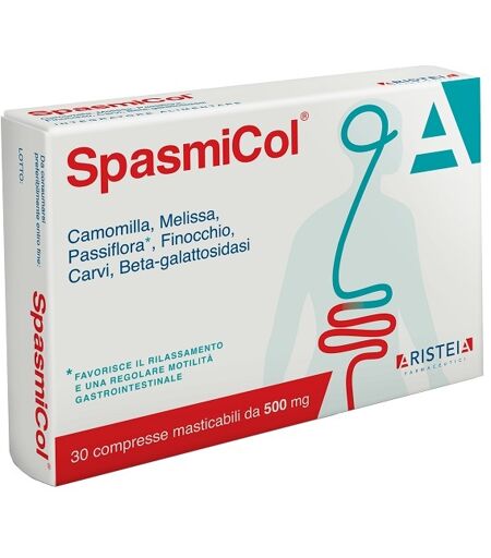 SpasmiCol - Descrizione Spasmicol Compresse è utile nei casi di irregolare funzionalità digestiva, difficile motilità gastrointestinale e per favorire efficacemente l'eliminazione dei gas. Risulta utile, inoltre, nel contrastare il fenomeno della Sindrome del colon irritabile, e migliora la digesti… ...
