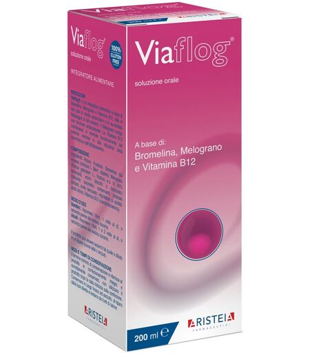 Viaflog - Descrizione Integratore alimentare a base di bromelina, melograno e vitamina B12, utile in tutti casi di ridotta assunzione o di aumentato fabbisogno di tali nutrienti. Il melograno svolge una funzione antiossidante. La vitamina B12 contribuisce al normale funzionamento del sistema nervos… ...