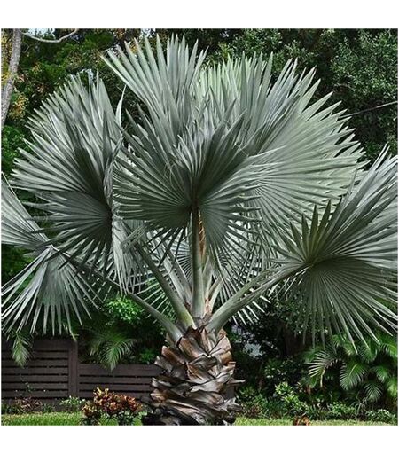 DESCRIZIONE: La Bismarckia nobilis è una palma sempreverde, originaria del Madagascar i cui esemplari adulti possono raggiungere i 15-20 m di altezza ed i 5-6 m di larghezza. Questo tipo di palma ha un fusto corto e tozzo, che negli esemplari giovani conserva la base delle vecchie fronde, mentre con il passare degli anni tende a divenire liscio; le fronde sono ampie fino a 150-200 cm, di forma a ventaglio, costituite da segmenti nastriformi, rigidi ed appuntiti; le giovani foglie sono di colore verde soffuso di viola porpora, mentre le fronde adulte sono di colore blu argento, ricoperte da una sottile patina cerosa di colore bianco argento. Ogni fronda di questa pianta è sostenuta da un lungo picciolo rigido, lungo fino a 150-180 cm, che porta sui lati alcune spine acuminate. La chioma di questa palma è molto particolare in quanto è perfettamente tondeggiante. Le piante più adulte possono resistere senza problemi a temperature che arrivano a -3/4°C per brevi periodi, ma sono comunque ...