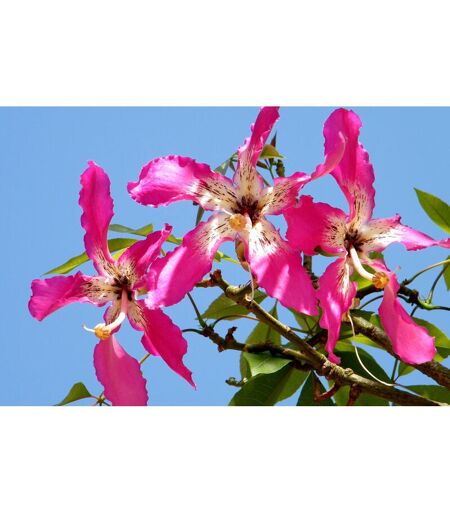Descrizione: La pianta di Chorisia speciosa è un albero semi-sempreverde proveniente dal Brasile e dall’Argentina, con tronco spinoso e carnoso e con parte bassa del fusto grande e tondeggiante, necessaria per conservare i liquidi durante i periodi di siccità. Possiede foglie pennate a picciolo lungo, lunghe fino a 12 cm, composte da 5-7 foglioline lanceolate, a volte dentate. In autunno, sbocciano dall’ascella fogliare grandi fiori a forma di imbuto, larghi circa 10 cm, di colore bianco crema, con la parte superiore dei petali rosa, screziati di bruno-giallognolo nella parte inferiore. Sviluppa frutti a forma di pera, di colore verde poi marrone, contenenti semi. Può raggiungere l’altezza di circa 15 metri. Temperatura minima 5 °C. ...