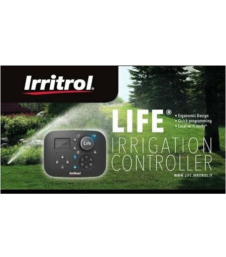 Centralina per irrigazione Irritrol Life 4 zone Per irrigare il tuo giardino o prato, Irritrol Life 4 è il programmatore a 4 stazioni con wifi opzionale che fa al caso tuo. Permette la programmazione giornaliera, settimanale, irrigazione giorni pari e dispari, intervallo da 1 a 30 giorni e altre funzioni Programmazione semplice ed intuitiva con icone facili da identificare 4 stazioni (per interno ed esterno) 2 programmi indipendenti 3 partenze per programma Water budget da 0% a 200% Wi-Fi locale opzionale Caratteristiche Tempo di irrigazione: da 1 min a 8 ore (incremento di 1 min) Programmazione flessibile: Giornaliera Settimanale Irrigazione giorni pari/dispari Irrigazione a intervalli da 1 a 30 giorni Altre caratteristiche Programma che evita le sovrapposizioni tra partenze Ritardo per pioggia programmabile fino a 31 giorni Memoria permanente L'opzione Super Cap consente di mantenere l'ora e la data in caso di interruzione di corrente per più di 24 ore (senza bisogno di batterie) ...